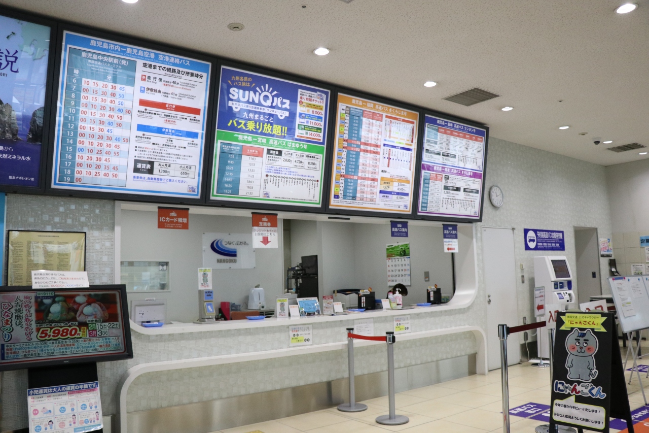 鹿児島中央駅から道一本挟んだところにありますが、地下道を介して繋がっているので雨の日でも安心です(逆に晴れていても道路は横断できず全て地下経由にはなりますが) 路線バス以外で駅前からの高速バスは全てこちらから出発します。窓口がある他、券売機での乗車券購入はクレジットカードも対応。建物は新しくトイレが綺麗で使いやすかったのが印象的でした。