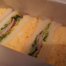 ハムと玉子のオーソドックスなタイムのサンドイッチです。