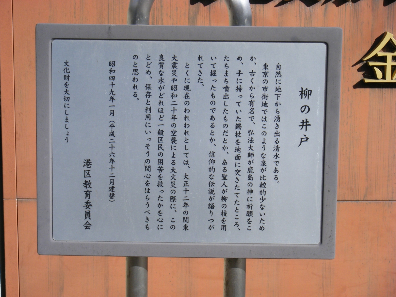 2020年1月に麻布周辺を散策した際に立ち寄りました。麻布十番駅から徒歩10分ほど、駅の南西側に位置する「善福寺」の参道脇にある井戸になります。子の井戸は自然に地下から湧き出てくる水だそうで、都内にそのような場所があるのかと大変驚きました。関東大震災や東京の空襲の際には人々の飲料水として多くの人を救ってきた井戸になるそうです。保健所の指導によりそのまま飲むことはできないそうですが、煮沸などすれば飲めるという事なのですかね。都内でこのような場所があるとは、貴重な場所です。
