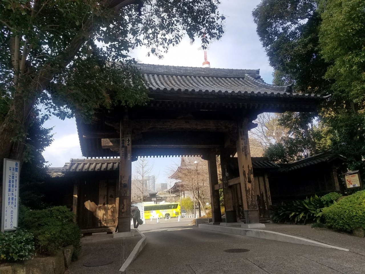日比谷通りから見て三解脱門の左側にあります。大きな三解脱門に比べて小ぶりな、増上寺の通用門です。柱部分が傷んでいるようにも見えますが表面的なものだけでしょうか。1650年頃の建物なのであまりピカピカにしてしまうのも違和感が出てしまうかもしれませんね。