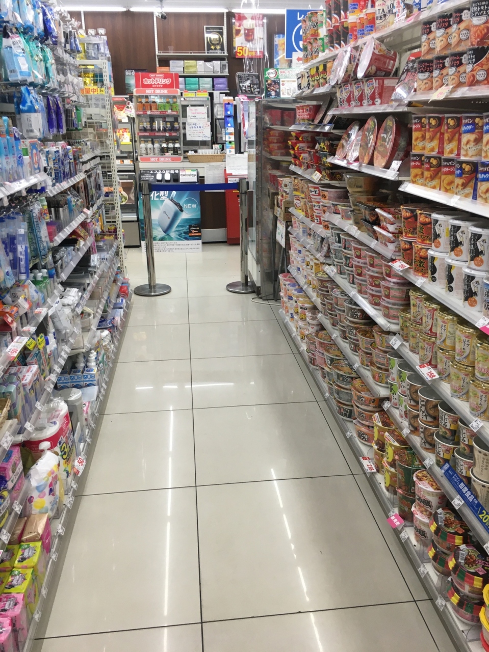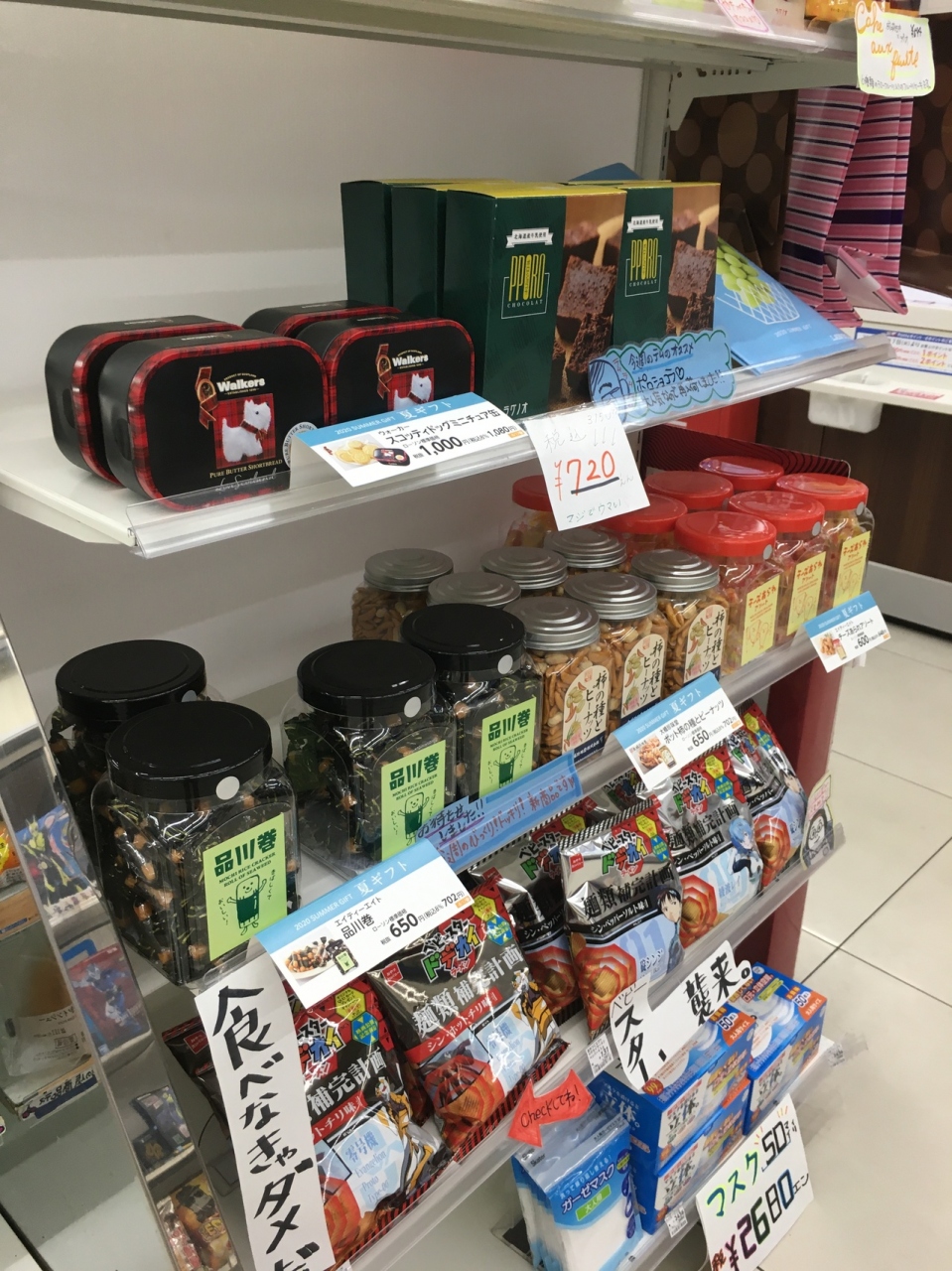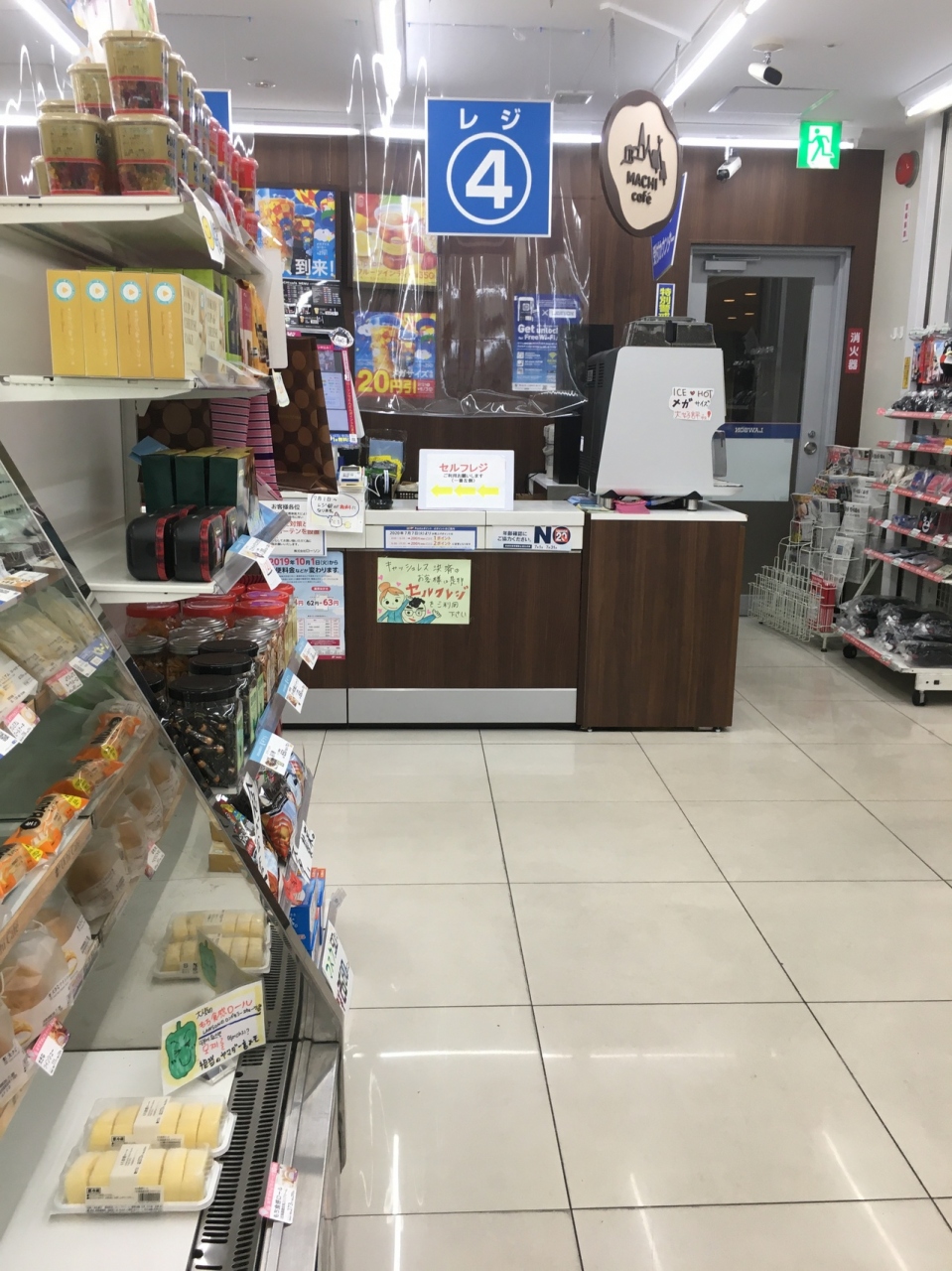 店内に入りくまモンのグッズが置いてあり、駄菓子屋に置いてあるような柿の種が売っでいました。他は一般的なコンビニと変わらない品揃えでしたがカップ麺がたくさん置いてありました。正方形型の店舗で狭い店内です。