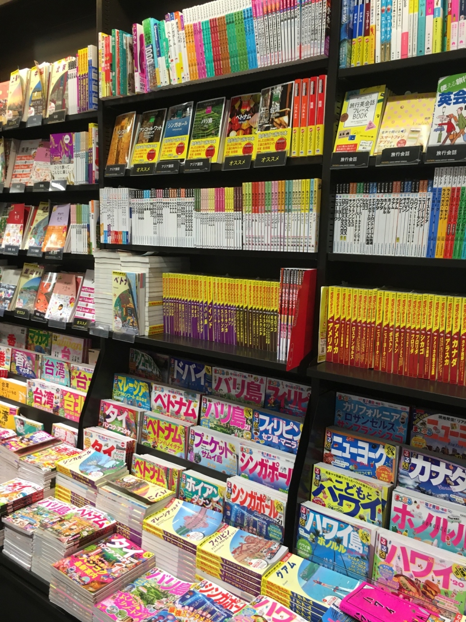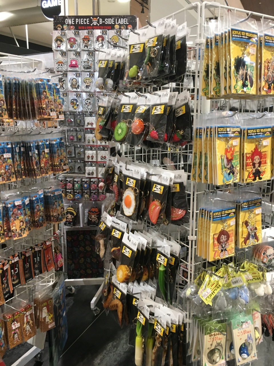 通路沿いにあり、本の種類はたくさんありました。国際空港なので海外旅行のガイドブックも豊富で、文具も売っていてスマートフォンの充電器や絵葉書も置いてありました。果物のキーホルダーも売っていて本物そっくりでした。