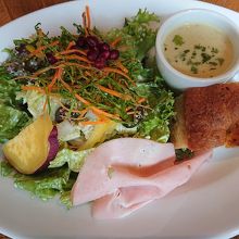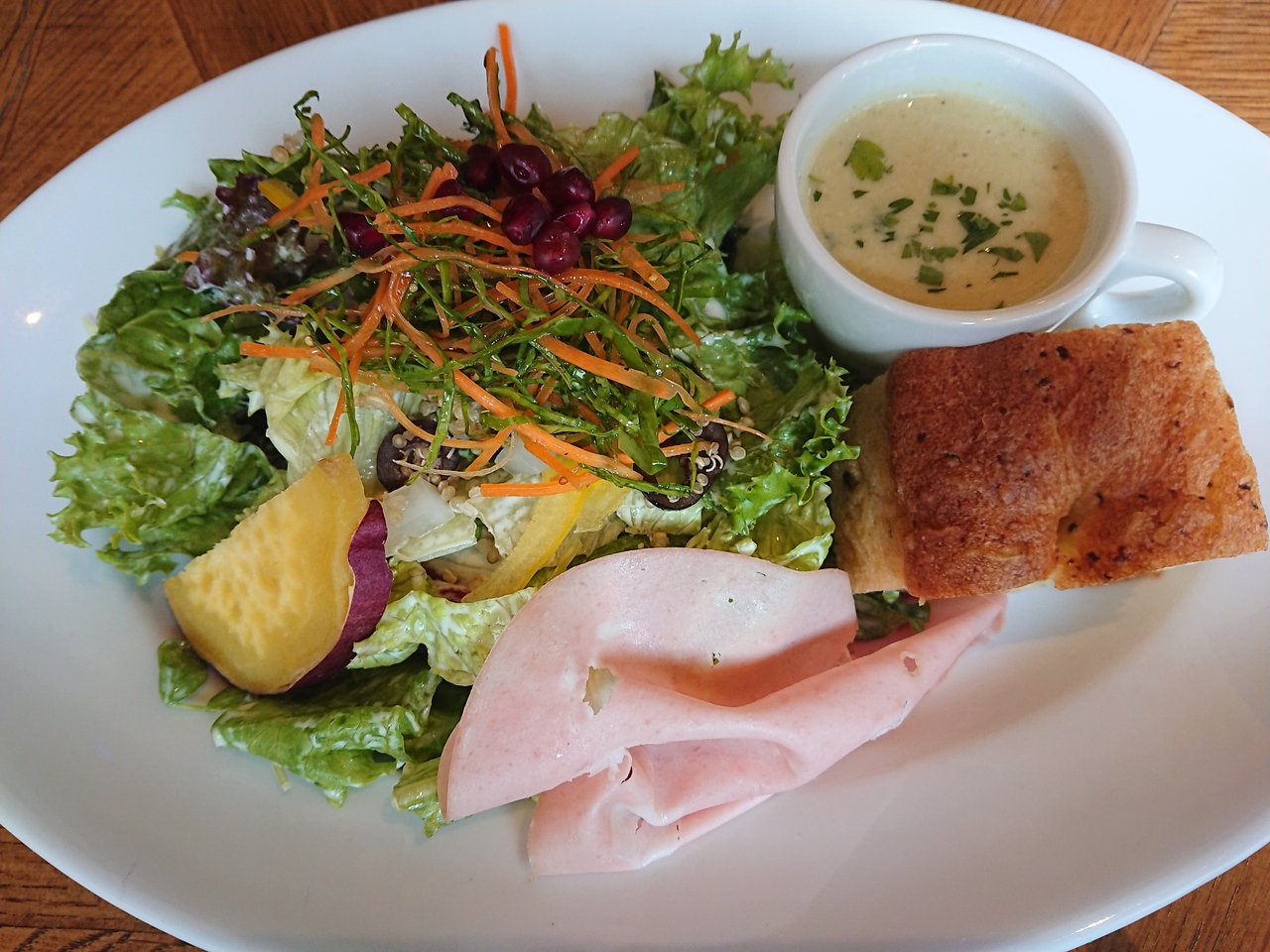 土日のランチは、サラダ・パスタ・デザート・食後の飲み物が付いて1,700円のセットか、メインが付く2,900円のセットの2種類から選ぶようで、1,700円のセットをチョイス。