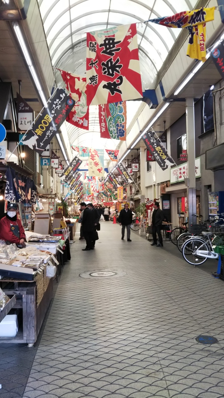 明石駅の近く、アーケードのある商店街です。数十年も前の話ですが、年末になると毎年、父が我が家から2時間かけて、魚の棚商店街にお正月用のにらみ鯛を買いにきていたのを思い出しました。今は明石といえば鯛よりもたこが有名ですが、僕の中では明石といえば鯛なのです。
