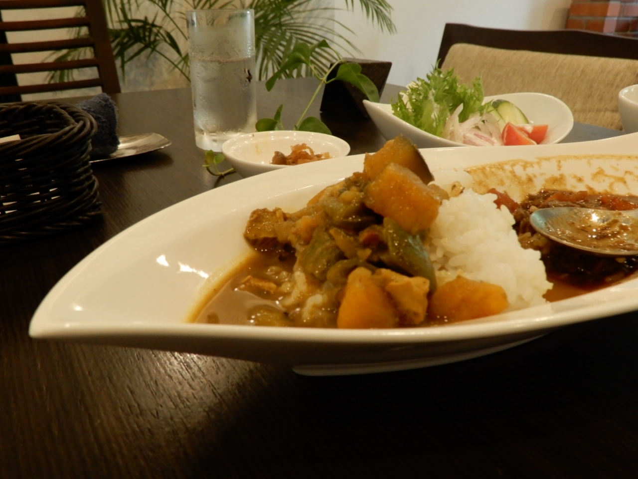 名前の通り、1つの料理で2つのカレーが楽しめるセットメニュー