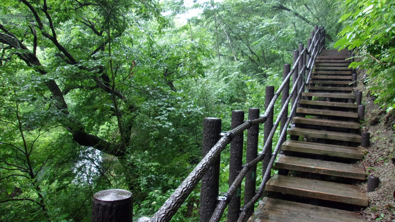 千ヶ滝へは通行止めと書かれた橋を渡って整備された歩道を少し先まで行ってみたが、台風で崩壊した場所はもっと先のようだ。