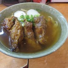 JR新宿駅東口と西武新宿駅の中間ぐらい、スタジオアルタの裏手にある沖縄そばのお店。沖縄そばのほか、各種チャンプルーなどを扱う。ソーキそばを注文。スープはやや濃いめ。大きなソーキ(軟骨ではない骨もあり)の煮つけが3個乗る。