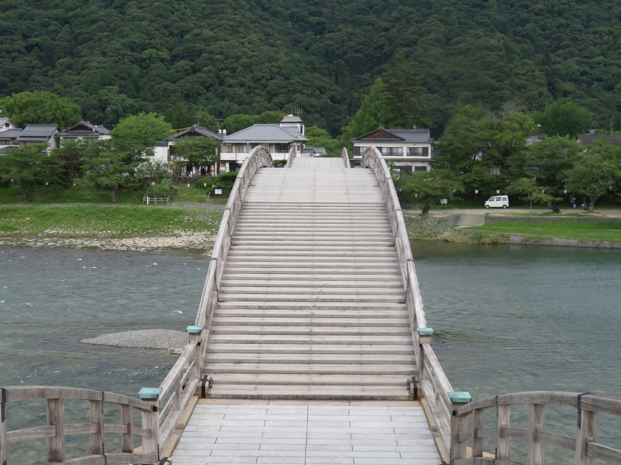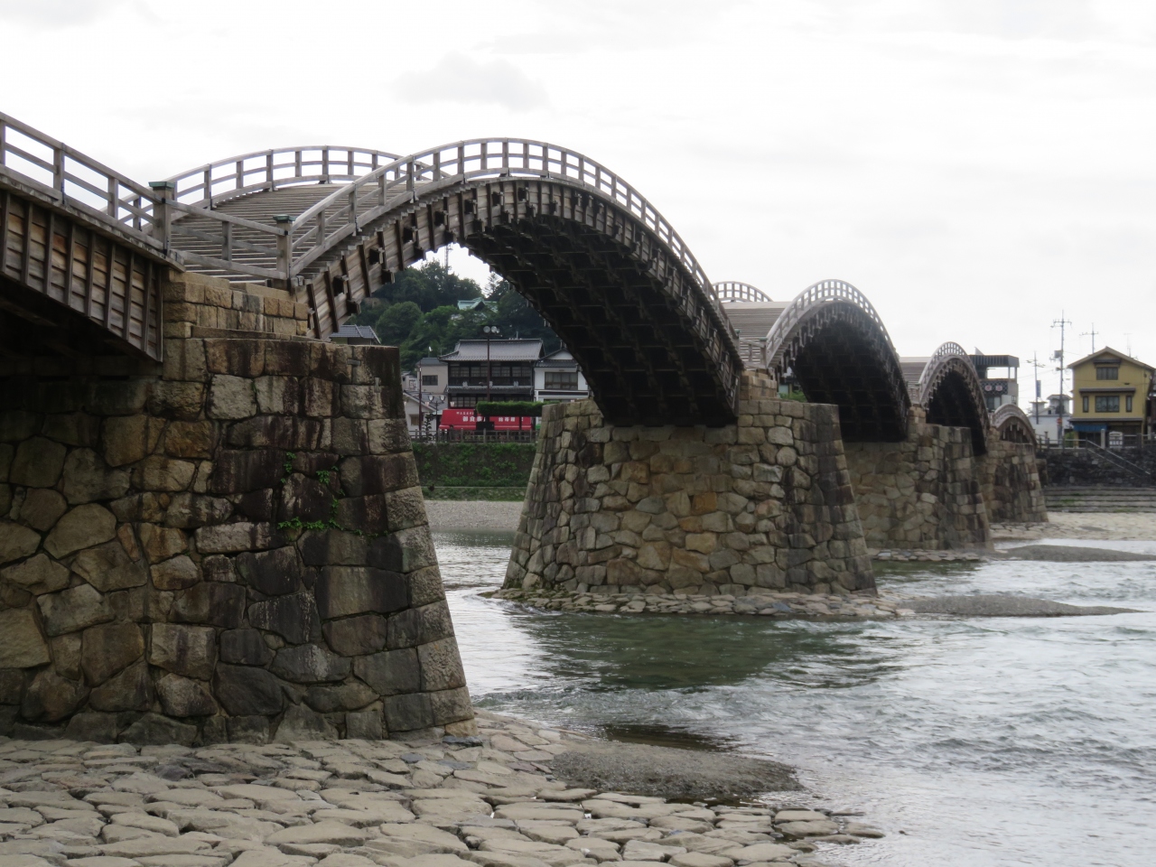 岩国の錦川に架かる木製の美しい五つのアーチ式の橋です。