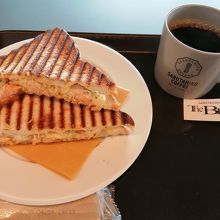 コーヒーはいろいろな種類があります。サンドイッチなどの軽食もあります。