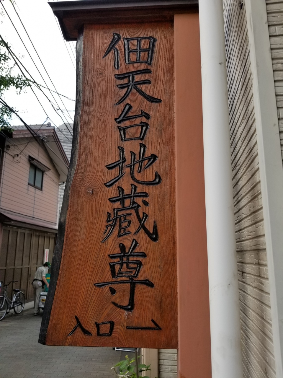 江戸時代から続く佃天台地蔵尊が、佃島の家と家の間にある。人一人が通っるのがやっとだ。