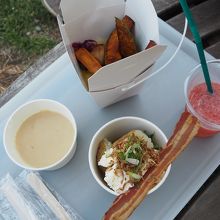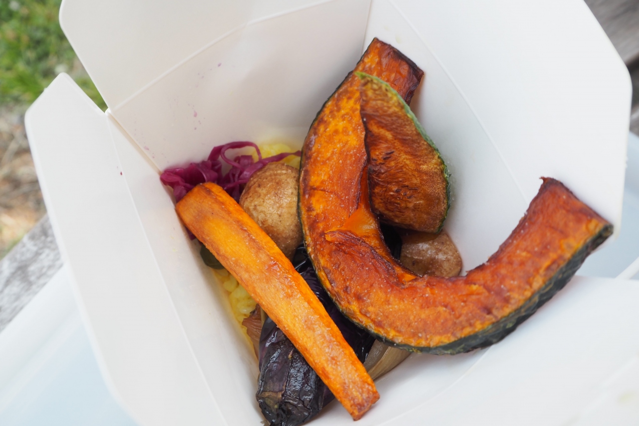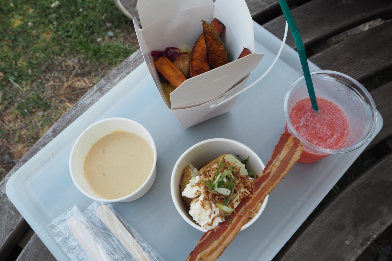軽めのお昼ということで、こちらの軽食を食べてきました。ホワイト野菜カレーとじゃがバターをいただきましたが、カレーが特に美味しかったです。野菜はかぼちゃ、じゃがいも、ズッキーニ、玉ねぎなど、どれもとっても甘くて超美味!ホワイトカレーは辛くなかったですが、絶妙な味わいで美味しかったです。また食べた~い!