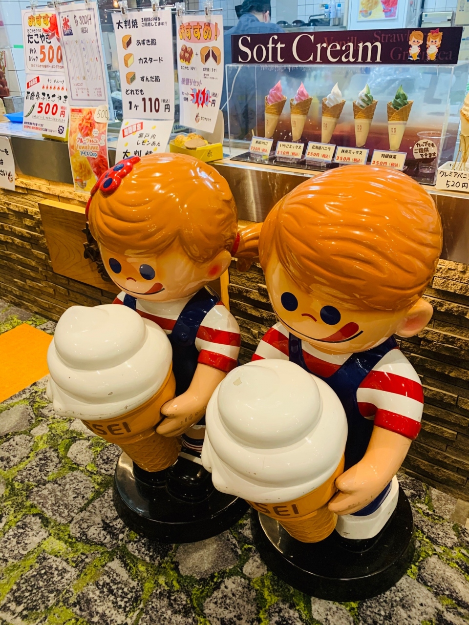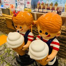 お店前のマスコットが 「ソフトクリーム」を持ってペロリとしているので 目立ちます