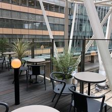 以前は面白いチェアなどがあったのですが、先月リニューアルしたそうで、ごく一般的なテーブルセットになっていたのはちょっと残念。でもソーシャルディスタンスも取りやすいし、いいことだと思います。