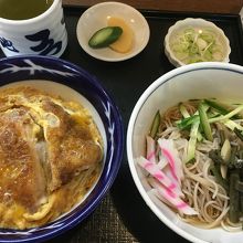 浜松城公園の北側、六間道路沿いにある地元系のそば食堂です。カウンターにテーブル席で、土曜日昼前、地元の家族連れ客でほぼ埋まっていました。かつ丼と冷たいそばのセットをいただきましたが、かなり待たされました。
