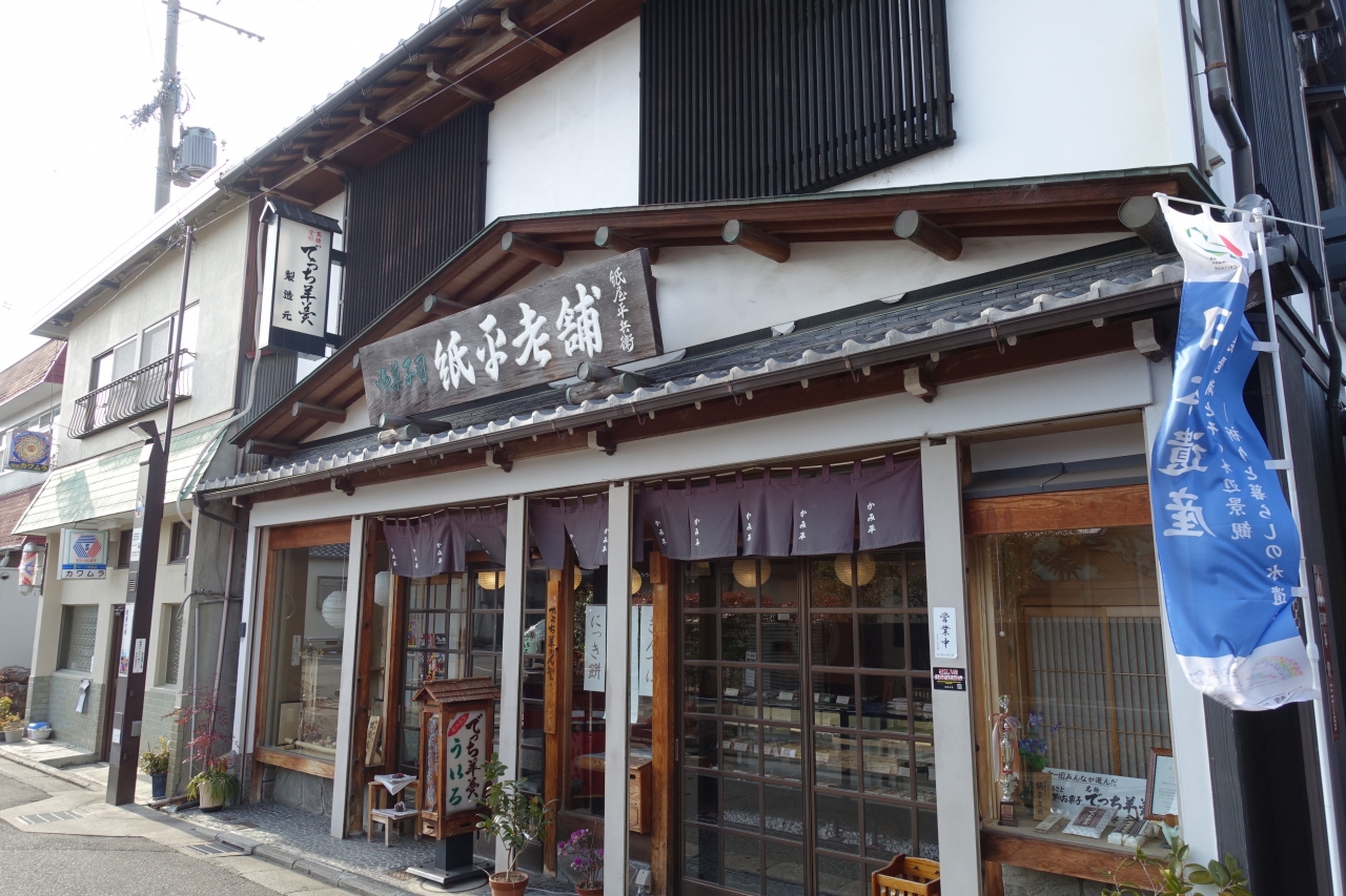 近江八幡の中心となる新町通りからは2ブロックほど西になる本町通り近くにある老舗和菓子店です。漆喰の白壁が遠くからも目立つ、いかにも歴史を感じる外観です。近江八幡の名物とされる「でっち羊羹」を販売するお店です。1個から購入できるのがありがたいです。一般的な饅頭やどら焼きなど、日持ちのする和菓子も販売されており、観光帰りの電車や車のなかでのおやつ用にも重宝します。