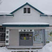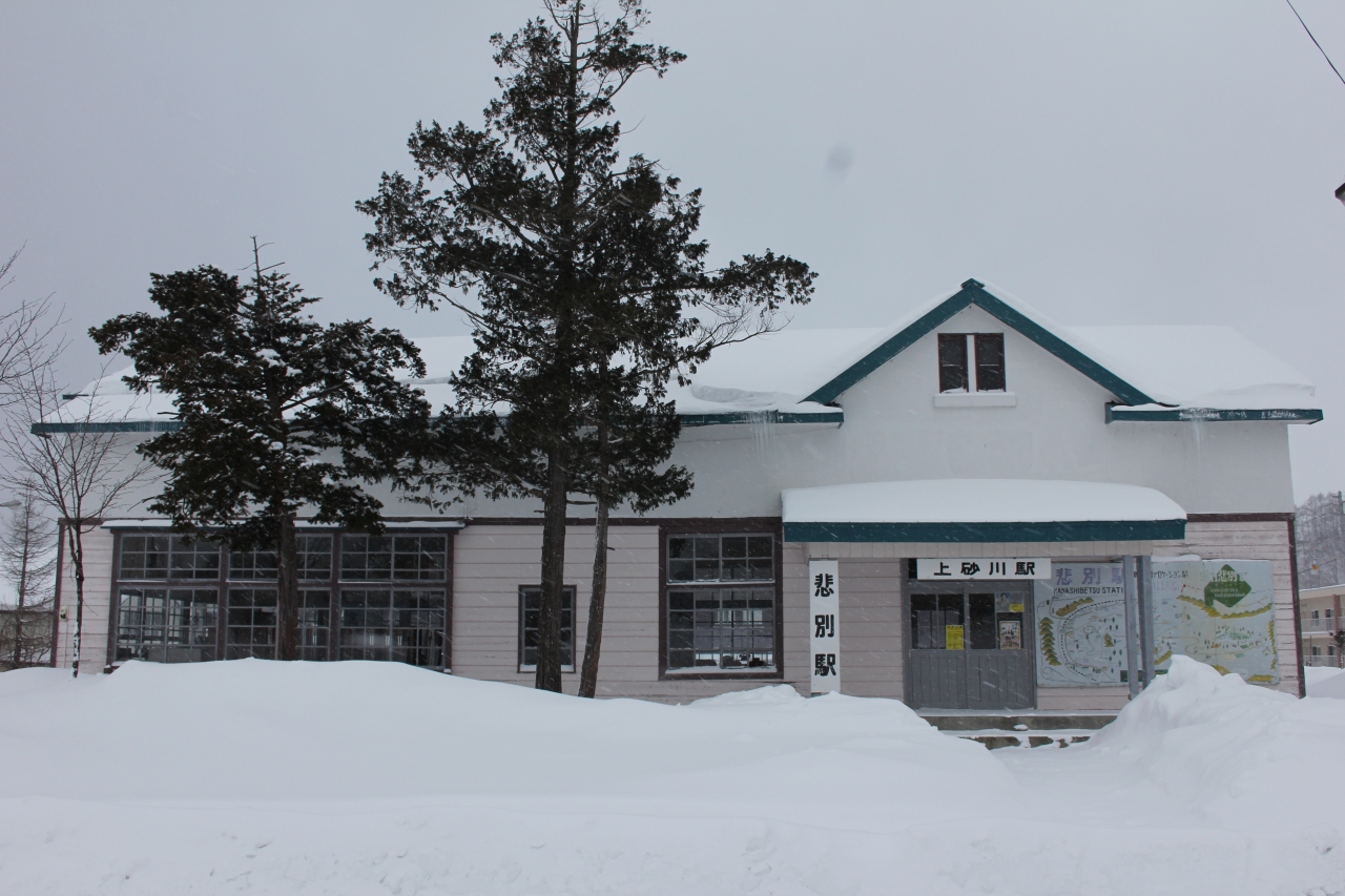 廃止された函館本線上砂川支線の終着駅の駅舎が保存されています。現役時代にはテレビドラマのロケでも利用され、その駅名「悲別駅」の看板もあります。昔の駅から少し移転しているようですが、駅裏には数両の車両も保存されていました。