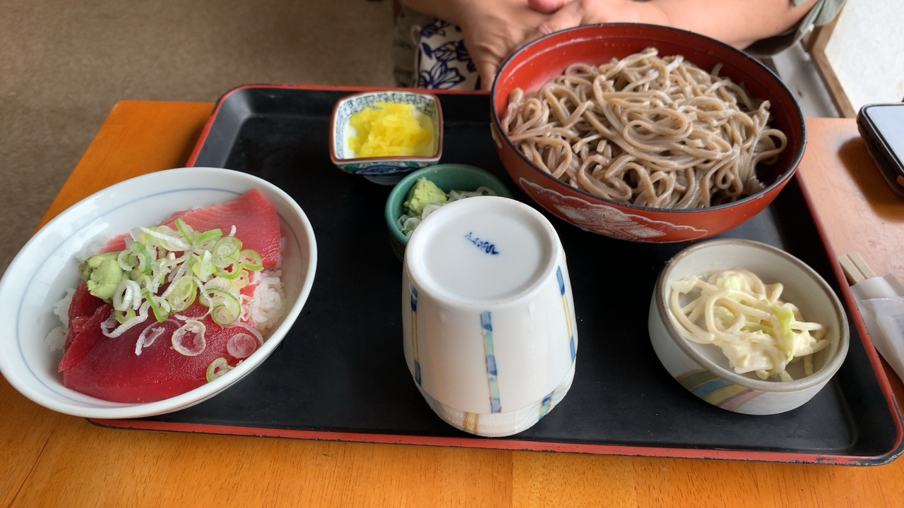 国道294を走ると、そ と書かれた看板が目を引く一番人気はなんと言っても盛り蕎麦で、90%は盛り蕎麦と80円のかき揚げを注文次は、マグロ丼ランチ、モツ煮定食と続きます本日はその2点を妻と注文して、おいしくいただきました