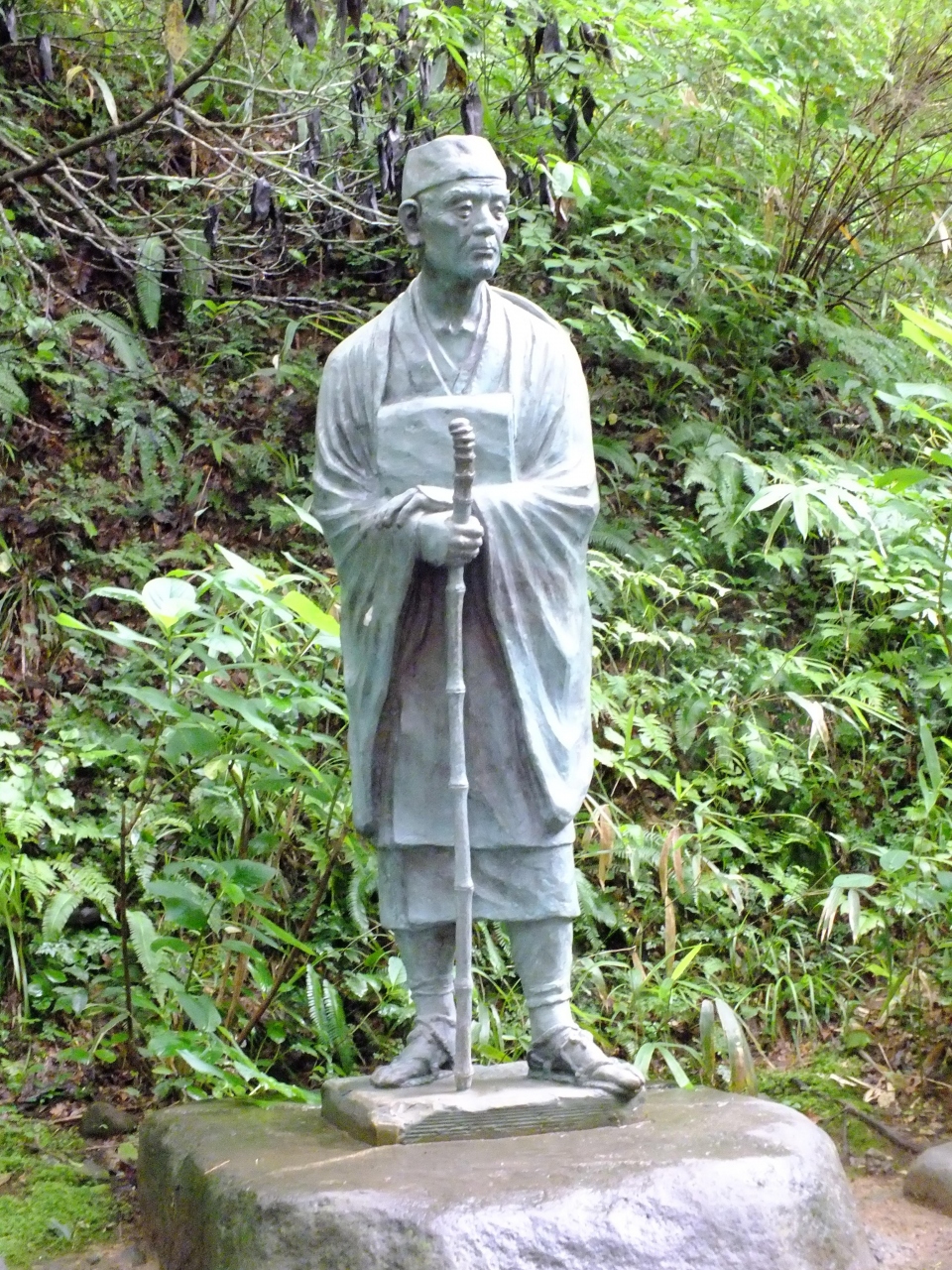 有名な松尾芭蕉ですね。東北は奥の細道の関係かいたる所に松尾芭蕉の像が残されていますが、中尊寺の芭蕉像は金色堂と旧覆堂の間の覆堂そばにあります。
