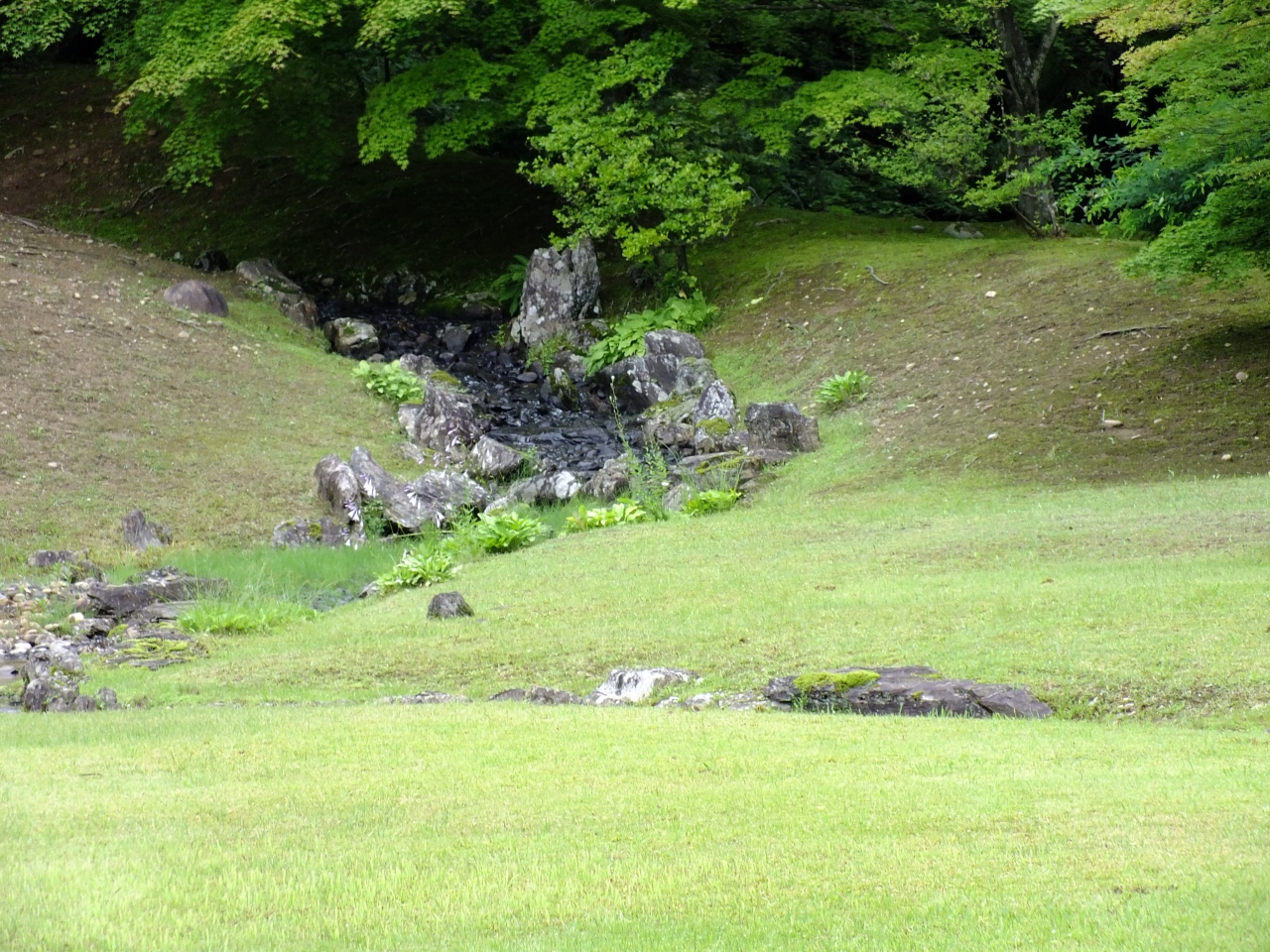 遣水は発掘調査で発見されて復元されたものです。