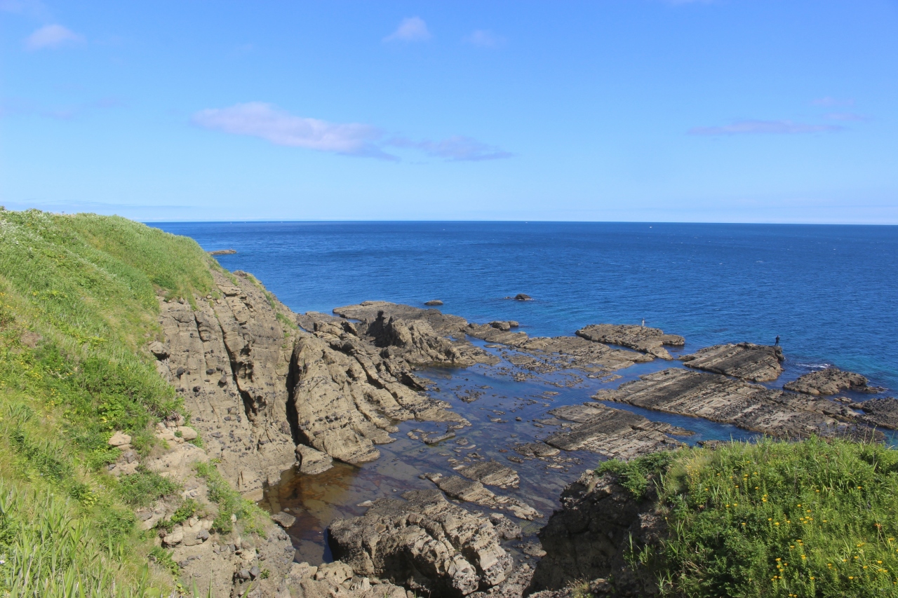 一周20分ほどの遊歩道があり、青い日本海の海と絶壁の組み合わせが美しい場所でした。