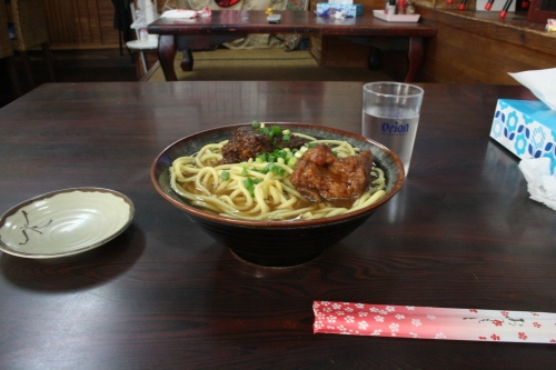 「ソーキそば」をいただきました。骨付きゆえ骨を出すお皿が添えられます。