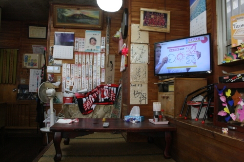 いろいろな人のサイン色紙がありました。とはいえ、ローカルな人?と思うくらい知らない人ばかりでしたが~。