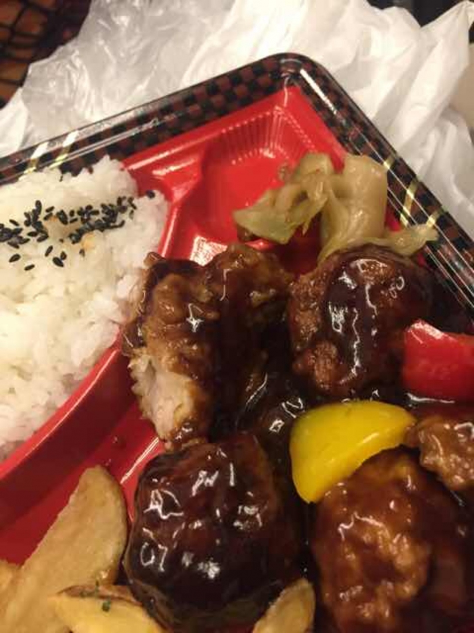 中華風肉団子のお弁当を食べましたが、黒酢の効いた本格的な中華でした。
