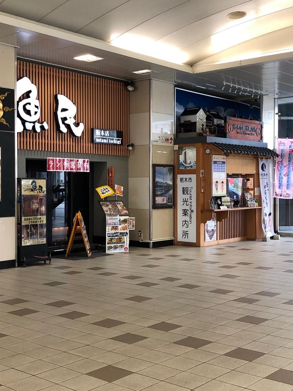 東武・JR栃木駅の観光案内所です。改札口を出て、北口・蔵の街側にあります。有人窓口があるだけの小さな案内所です。蔵の街は歩いて周ることが多いので、こちらで観光マップをもらっておくといいです。何種類かのマップがありました。