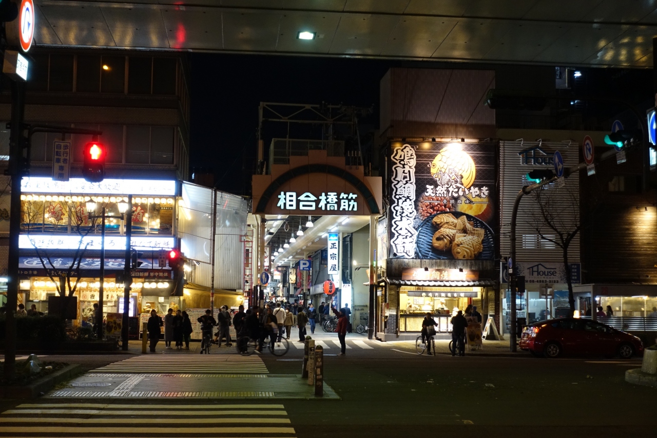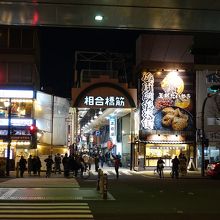 道頓堀川に架かる橋のひとつに「相合橋」があり、この名前にちなんだ商店街が相合橋筋商店街です。「相合橋」からまっすぐ南に向かった場所です。観光客であふれる千日前の中心部などとはことなり、やや地味な印象があります。行き交う人も地元の方が多いようで、ガイドブックには載っていない穴場的なお店も多いです。