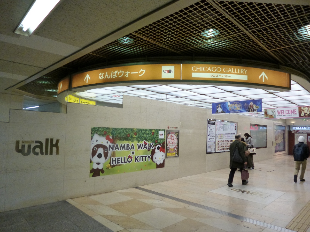 なんばウォークは、千日前通りの地下に位置する商店街です。東西に長くJR難波駅から近鉄日本橋駅までにおよび250ほどの店舗があります。商店街が誕生したのは1970年と50年も前のことで、お店によってはかなりの古さを感じます。地上に比べると概ね人が少ないので、地下鉄利用時などの際に通ることも多いです。特に観光要素は感じません。