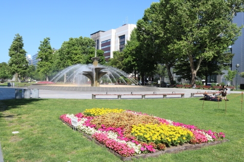 北海道の短い夏だからなのか?!外に出て、噴水に足を浸したり遊んでいるファミリーなどがいました。
