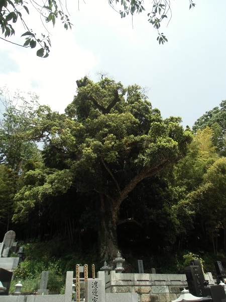 カゴノキは本堂裏の墓地の奥の斜面に立っています。