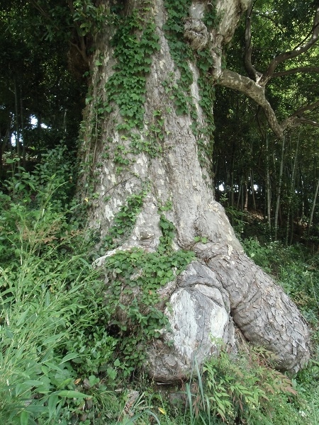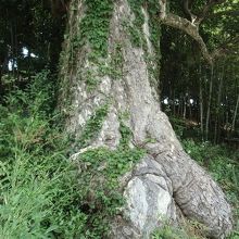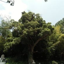 墓地奥の斜面に聳える、東京都天然記念物の大木