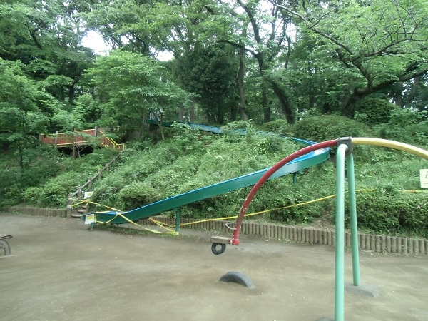 そのため、斜面を利用した滑り台や、東京都では珍しいと思われるローラーすべり台などがあります。