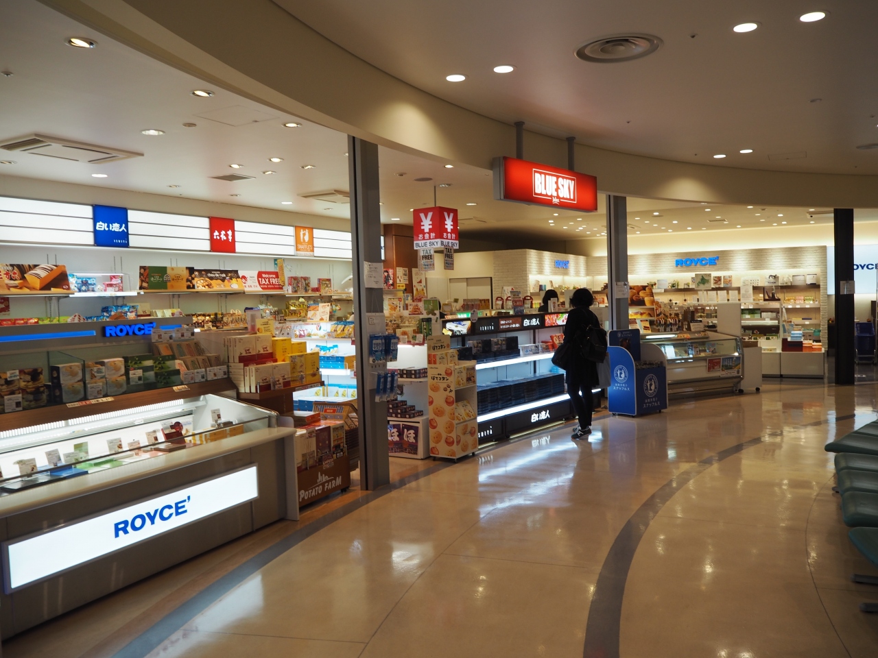 函館空港の2階にBLUE SKYの店舗はあります。日本航空が就航している全国の各地の空港にBLUE SKYはあります。そのため、おなじみという感じの店舗です。他の地域の店と同じように、函館の地元の菓子や加工食品(特に水産物)や名産品などがあります。JAL カードで買い物をすると割引やマイルがたまるのが、買い物決定になってきます。
