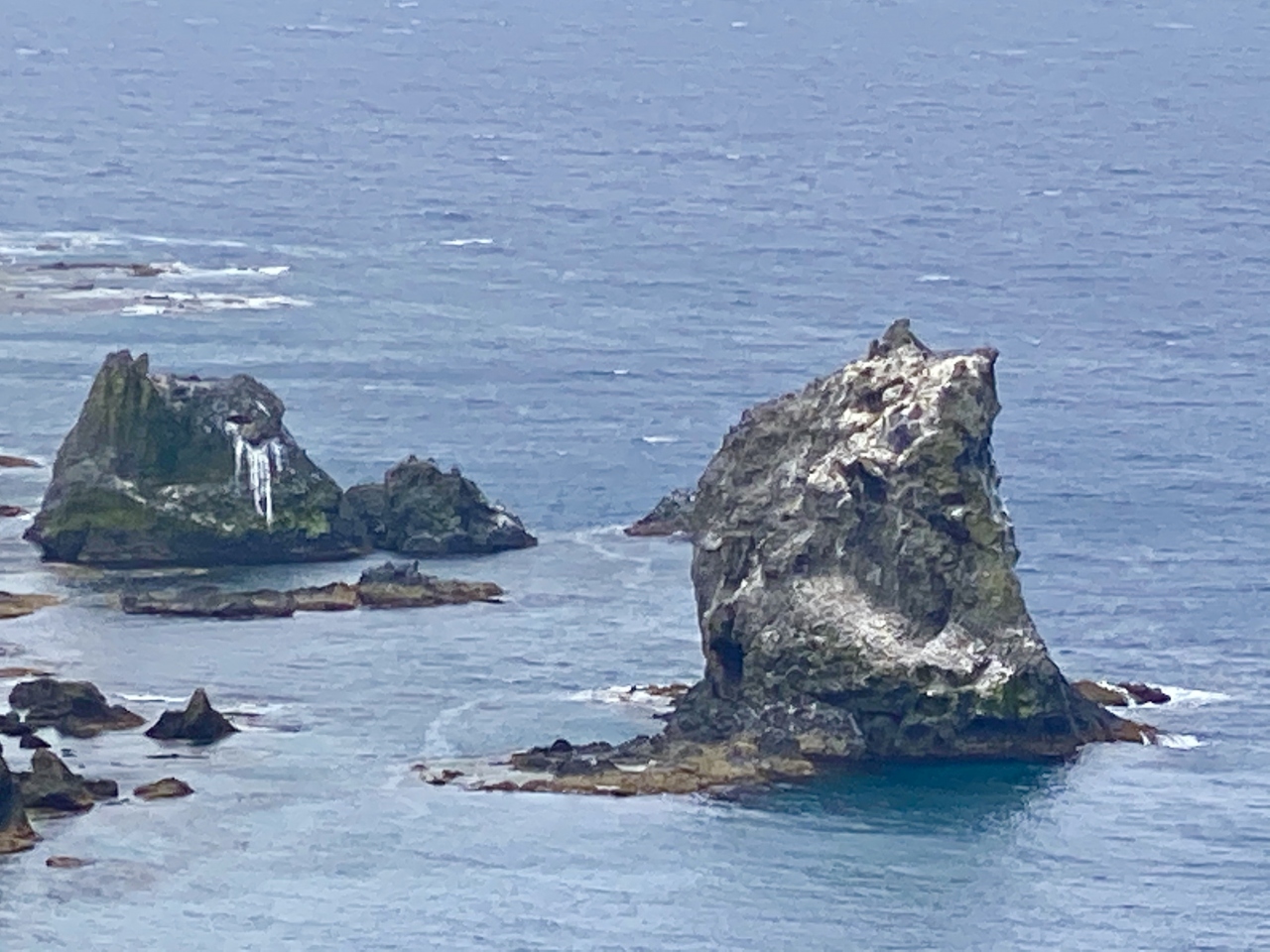 桃岩展望台と違って、ここから眺めると形が桃というのがよくわかります。海沿いでこのような風変わりな風景が見られる所はなかなかないので、感動的でした。新型コロナで観光客がいなくて、貸し切り状態というのも感動度upします。