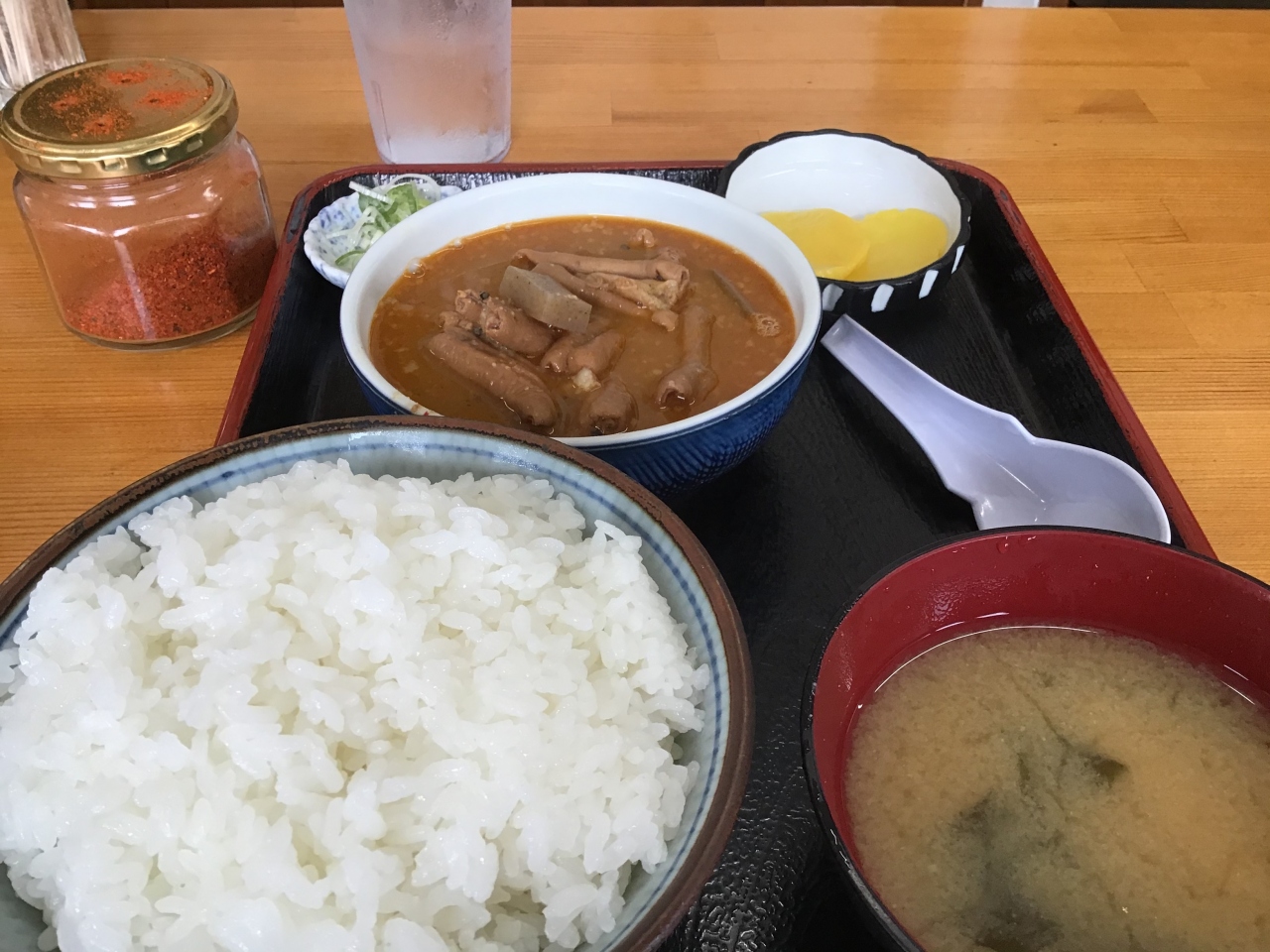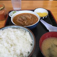 もつ煮定食の並み590円。
