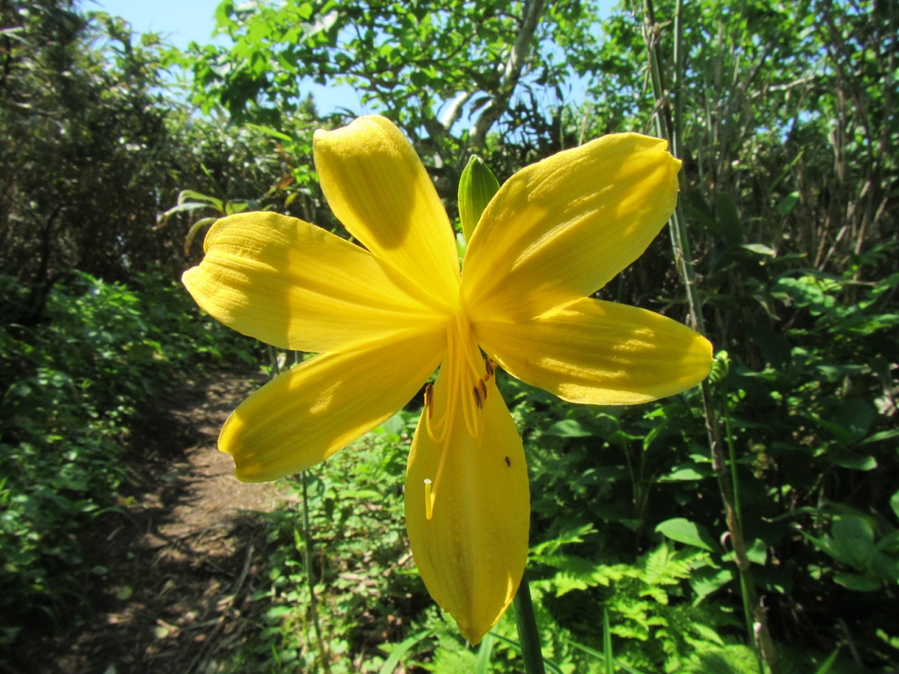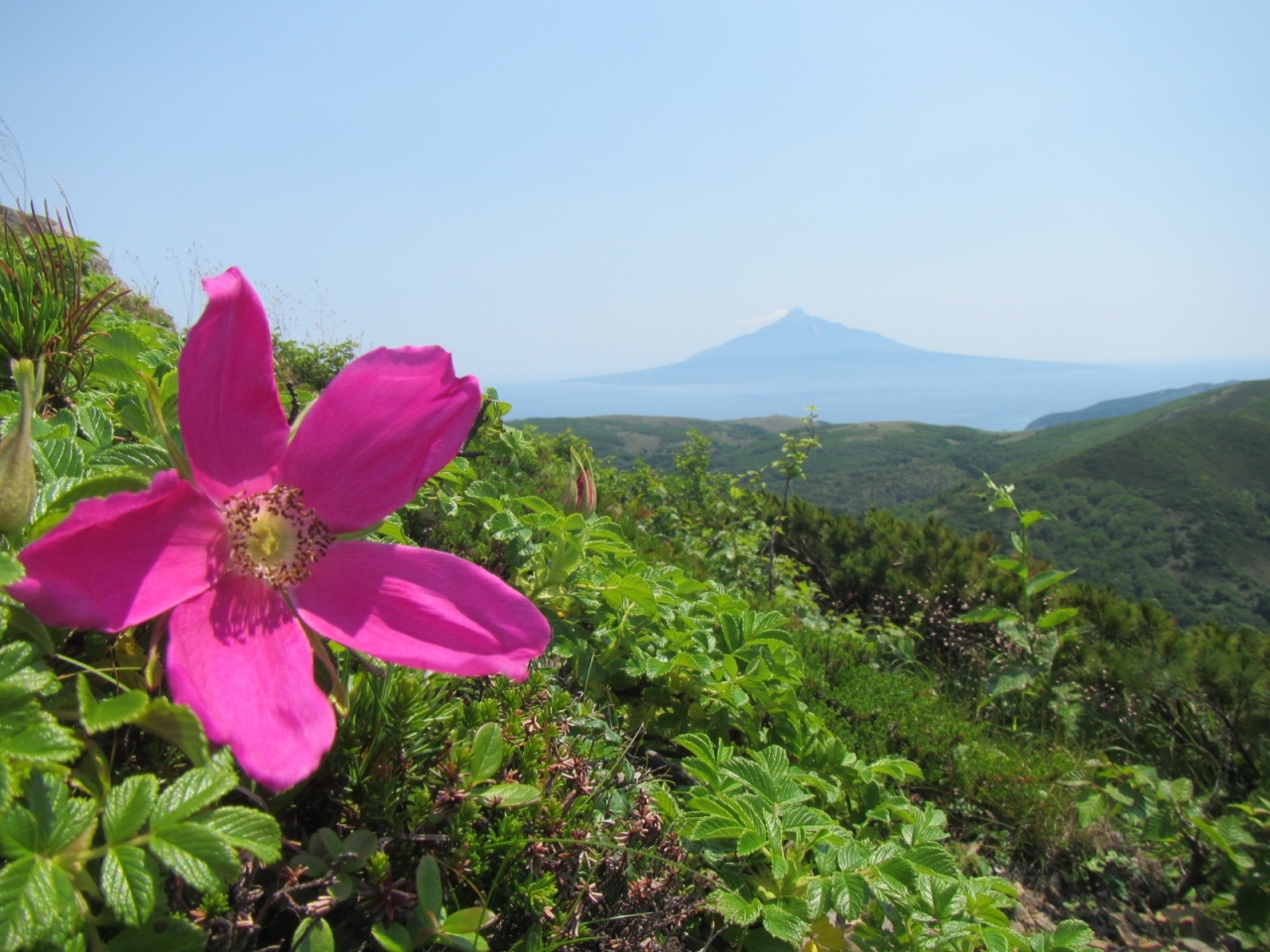麓からコースの3分の2くらいは樹林下で、日差しや暑さが遮られますが、その代わり展望もスッキリしません。ただ、7月上旬に訪れたところ、道中でハマナスやタカネバラ、エゾカンゾウ、ゴゼンタチバナ、ヨツバシオガマ、サルナシなどのきれいな花が目を楽しませてくれました。花の種類は、桃岩コースや礼文林道コースよりは大分少なくなります。