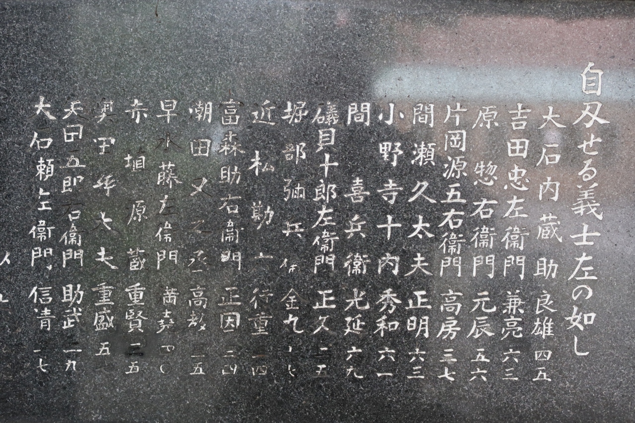 白金高輪駅に近い高松中学校の都営アパート側の一角に大石良雄ほか16人忠烈の跡があります。忠臣蔵で知られる大石内蔵助他16人の赤穂義士が、この地にあった細川家下屋敷預かりとなり、そのご幕府の命により切腹を果たした場所です。中に入ることはできませんが、約320年前に実際にこの場所で切腹を果たしたと思うと、心を揺さぶられます。他の義士が切腹した場所は見ることができません。