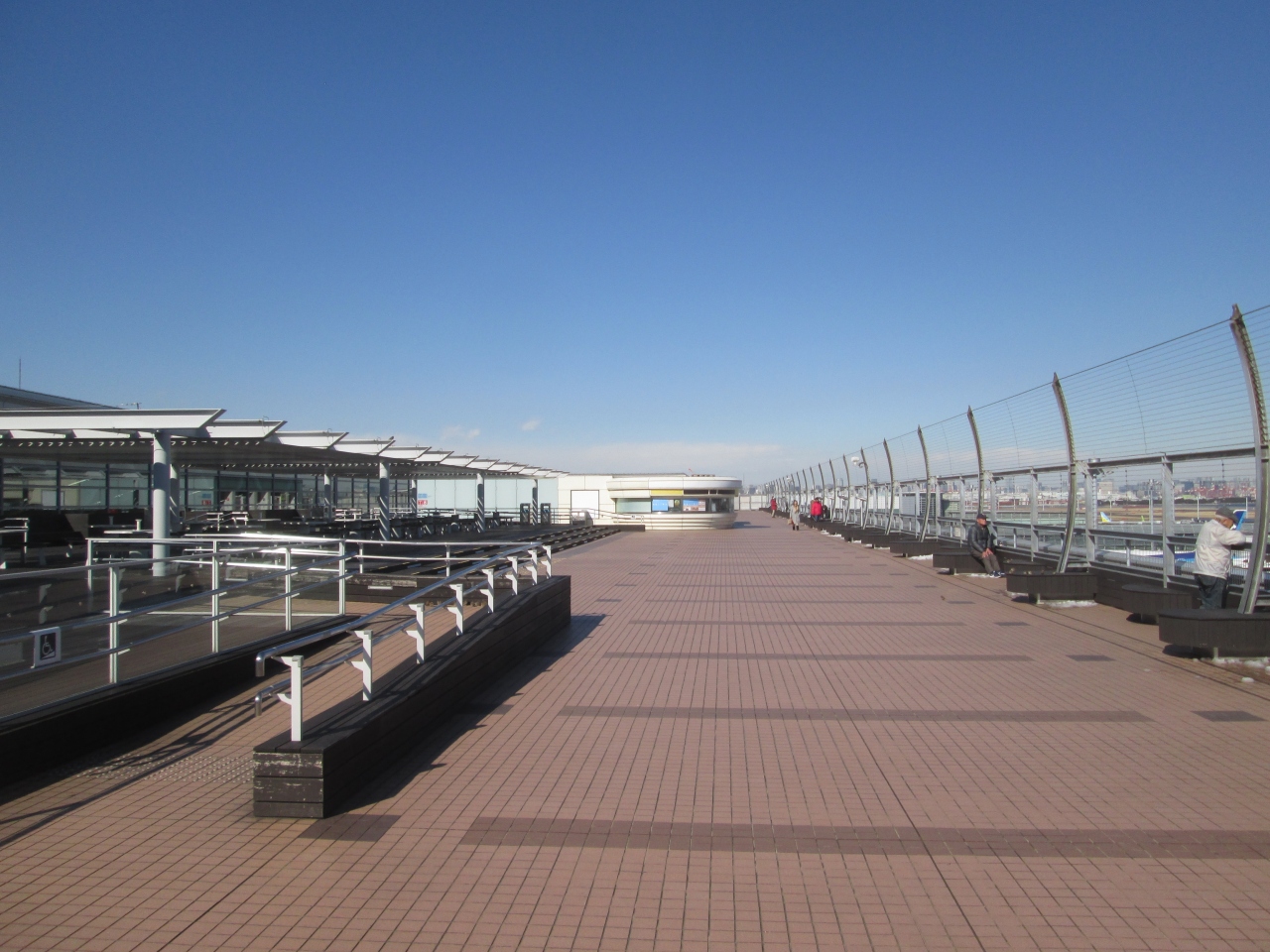 羽田空港第2旅客ターミナル 展望デッキは出発前に必ず見学に立ち寄ります。出発する日は快晴で見学者がいました。国際線ターミナルとともにどんどん拡張しているため以前とは違った景色が楽しめ、駐機している飛行機も増えたように感じました。