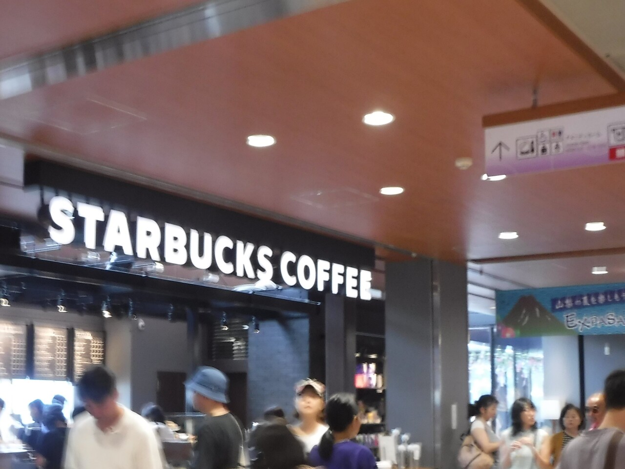 八王子、東京方面から山梨、河口湖方面に向かう中央高速道路の下り線にあるサービスエリアです。スターバックスコーヒーでは濃いドリップコーヒーをいただきました。ラーメン店や牛丼店などありますが上り線と比べると閑散としていました