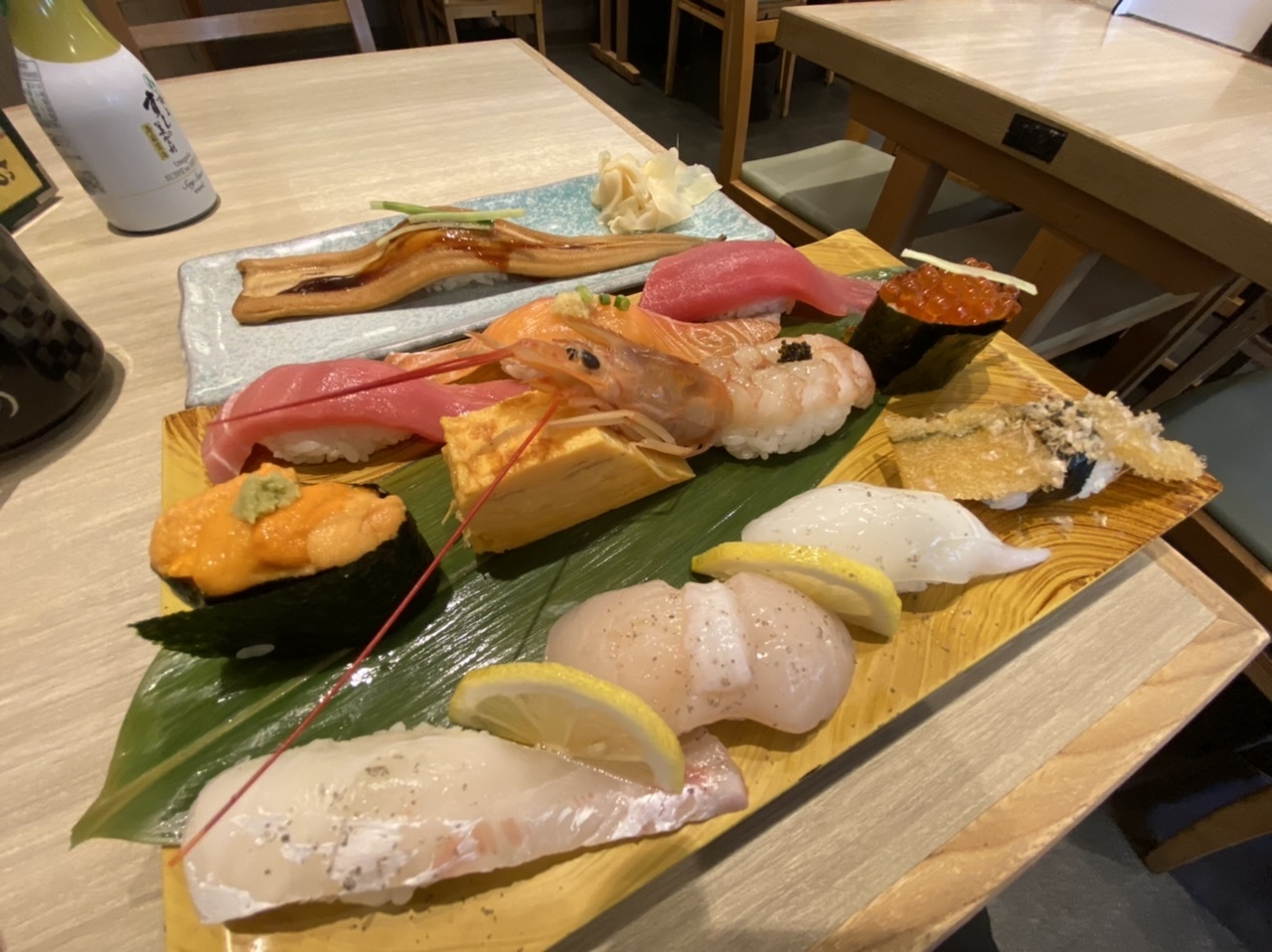 コロナ前は開店前から行列が出来、1時間以上並ぶことは当たり前でした。お昼時にお店を通り掛かり入ってみると、すぐ席を案内されました。以前では考えられません。店内も空いている様な感じでした。限定の寿司セット2,310円を注文。以前と比べてはあまり良くありませんが、握りも丁寧でとても美味しく感じました。職人さんに余裕が出来た為でしょうか。とても美味しかったです。