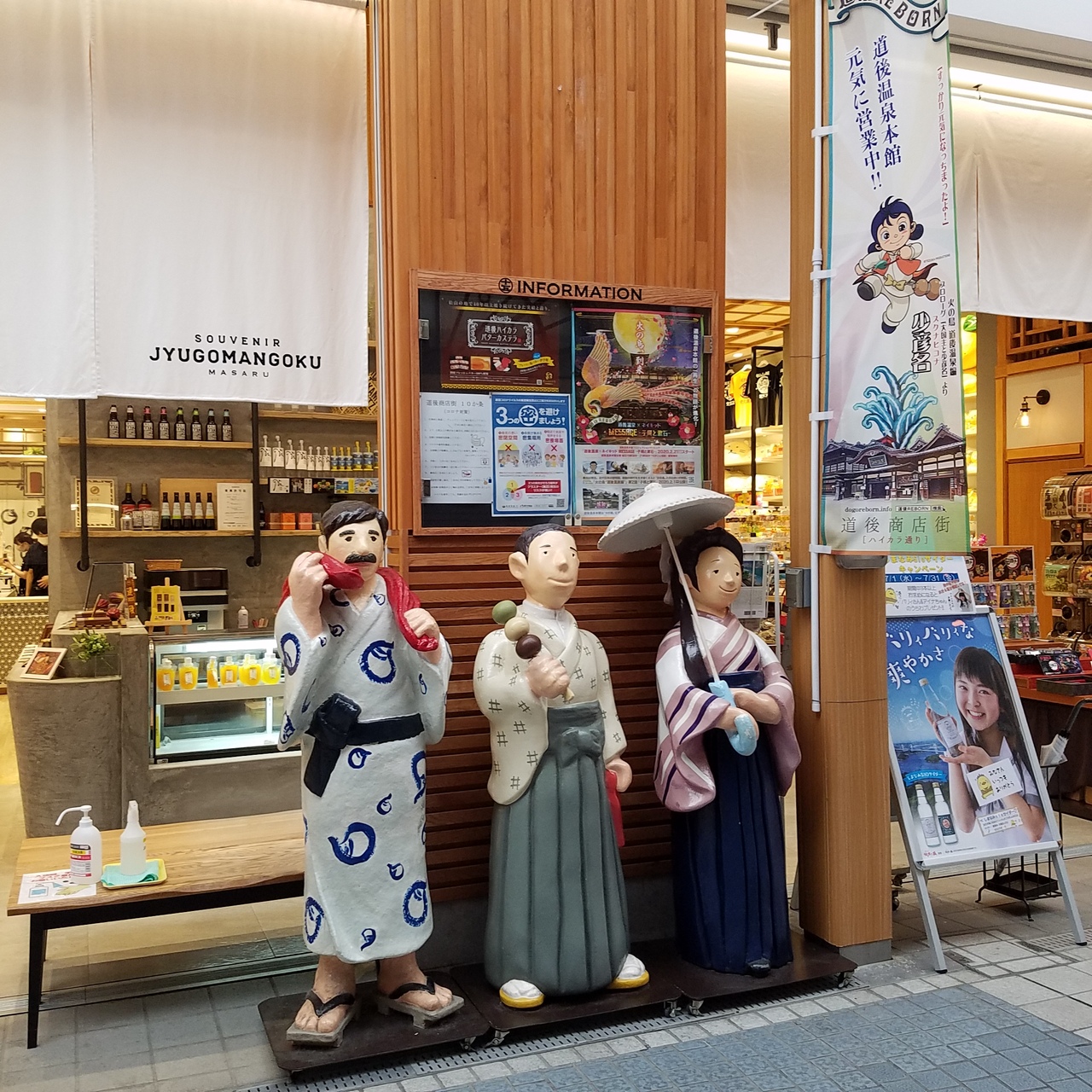 道後温泉商店街にあるお土産屋さん、十五万石です。道後温泉商店街レトロな雰囲気で老舗が多いですが、こちらお店は新しくモダンな雰囲気です。