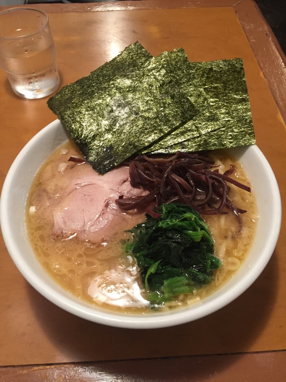 久しぶりに訪問。夏限定のざるラーメンを食べようと思ったがこの日はあまり暑くなかったので、定番のラーメンと餃子(無料券あり)を注文。だんだん値上がりしているのが気になるが、並ばずに入れることも、餃子無料券があるのがお得。