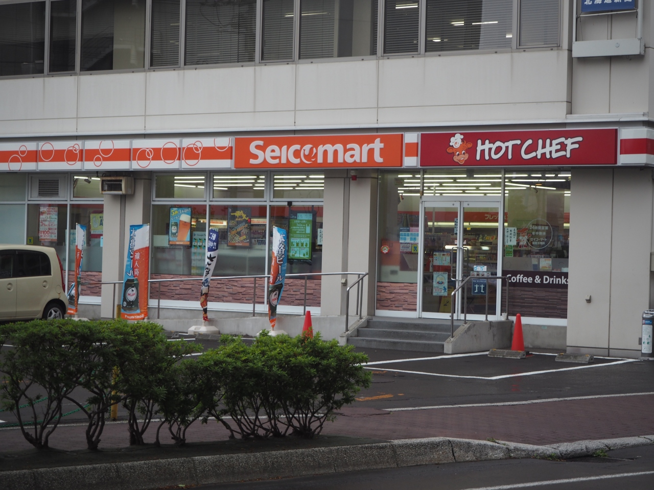 函館市電の五稜郭停留所から五稜郭へと向かうちょうどなかほどにセイコマートの函館五稜郭店はあります。セイコマートは北海道メインのコンビニで、普段見慣れないので、品ぞろえなどにとても興味があります。飲み物を買いたくて立ち寄りましたが、普段見ないセイコマートのオリジナルのものも多くありました。支払いでクオカードを使おうと思ったのですが、使えないといわれました。残念でした。