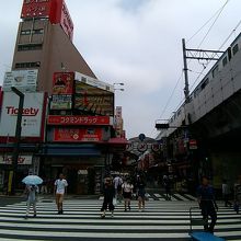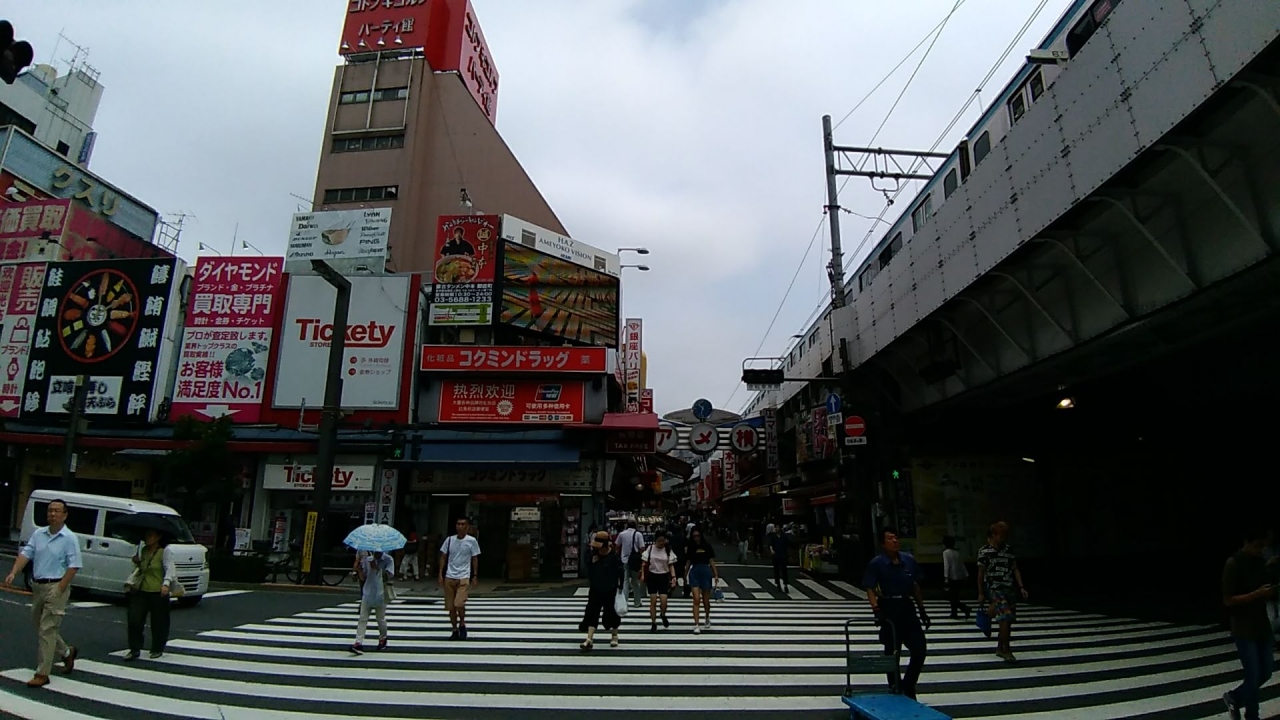 アメヤ横丁問屋街 (アメ横)は、上野駅と御徒町駅の間に広がっていて、日本のみでなく世界的にも有名な商店街です。一番おすすめの通りは、やはり線路沿いの部分です。添付写真は、御徒町駅前から見た様子です。観光客も多いです。