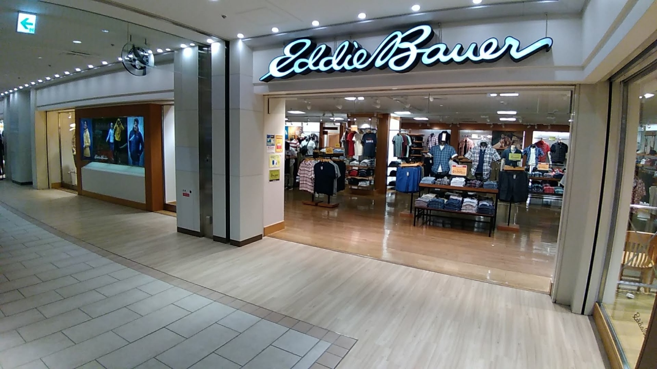 エディー バウアー (池袋サンシャインシティ店)は、池袋サンシャインシティの目立つ場所にあって、添付写真のように、大きな店構えなので、見つけやすいです。高級感あふれる店内では、高品質の商品がたくさんあり、超おすすめです。