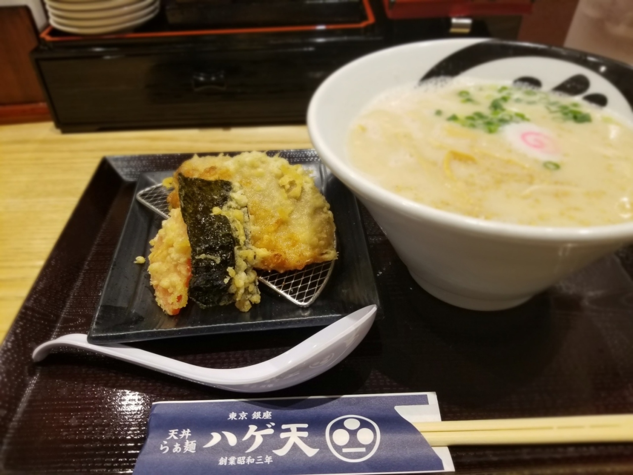 銀座をうろうろしていたら、ハゲ天なのにラーメンと書いてあるお店があったので入ってみました。