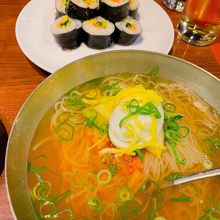 毎日うだるようなアつさ。こんなときには冷麺を食べたいです。ですので、冷麺館へ久しぶりに。とはいえ北新地店ははじめてでした。ビルの2階にありました。冷麺は飽きるのでハーフにしてちぢみとキンパをシェアしていただきました。