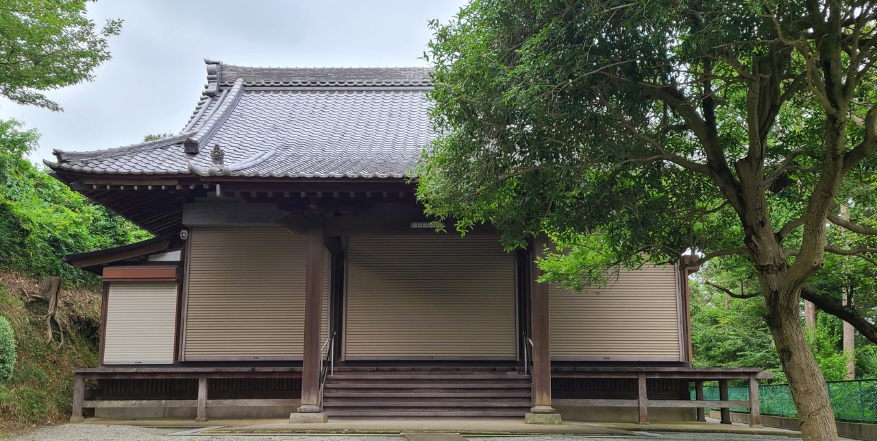 やっと着いたと思ったらなぜかシャッターがおりた本堂。